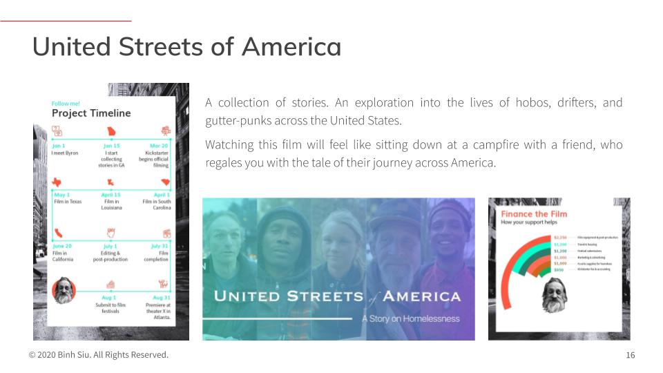 A collection of stories. An exploration into the lives of hobos, drifters, and gutter-punks across the United States. Watching this film will feel like sitting down at a campfire with a friend, who regales you with the tale of their journey across America.
